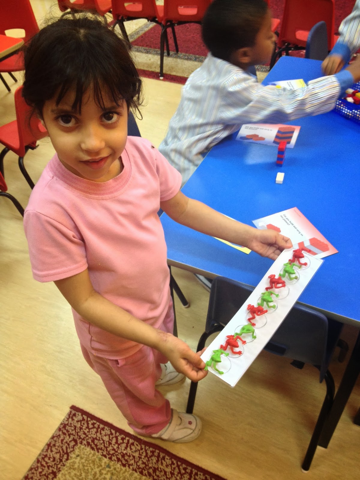 This week we focused on learning the letter F, night and day, and patterns. The students knew a lot of vocabulary for the letter F; fire, family, fish, face, flag, fruit, fingers, five, four, and foot. One student brought in a wonderful UAE flag for the letter F, while another student brought in letter F vocabulary cards for the class to use. We discussed events that happen during the daytime and nighttime for science. The students were asked to draw a picture of what happens in the day, and what happens at night. We looked at pictures and discussed when they thought certain events would occur. During math time we discussed patterns, and how to make and extend patterns. First we did sound patterns (woof and rib-bit), then movement patterns (clap and jump), which led into color patterns. The students did a nice job during whole group participating in making patterns. Overall during the week the class had high attendance, as well as wonderful student participation during our lessons.